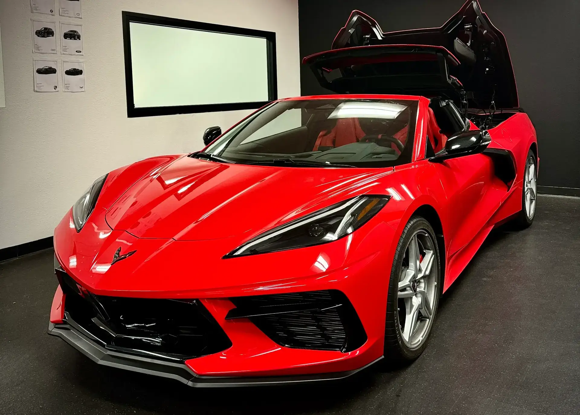 ..a breathtaking blend of power, luxury, and open-air driving excitement. Equipped with a 6.2-liter V8 engine producing 495 horsepower, it rockets from 0-60 mph in under 3 seconds. The 3LT trim enhances the experience with premium features like heated and ventilated leather seats, a Bose audio system, and a head-up display. The retractable hardtop offers seamless transitions between coupe and convertible, while its sleek, aerodynamic design turns heads.